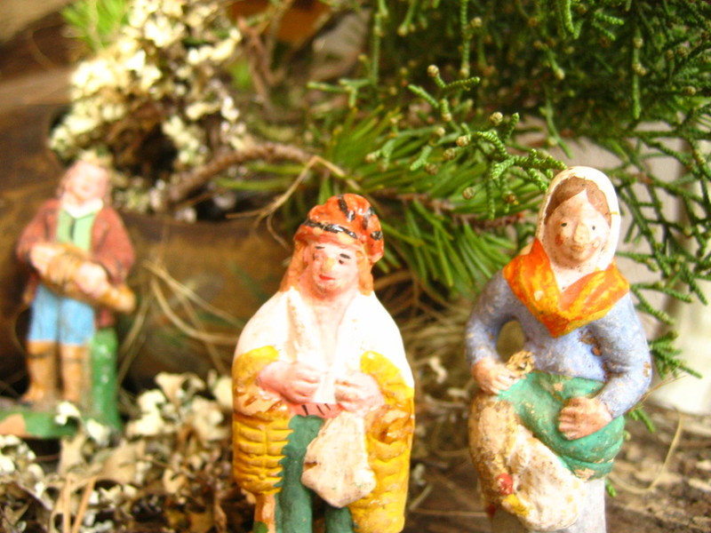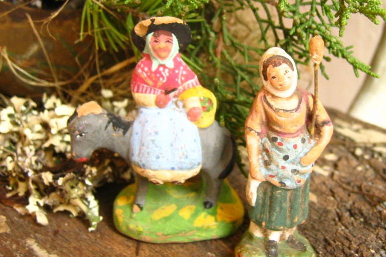 Santons are handmade and painted Provençal figurines, representing peasants of the 18th and 19th century. They are set in a crèche, a typical French country village, which surrounds the nativity, Mary, Joseph, the Christ child and the three kings, wear traditional clothing.)