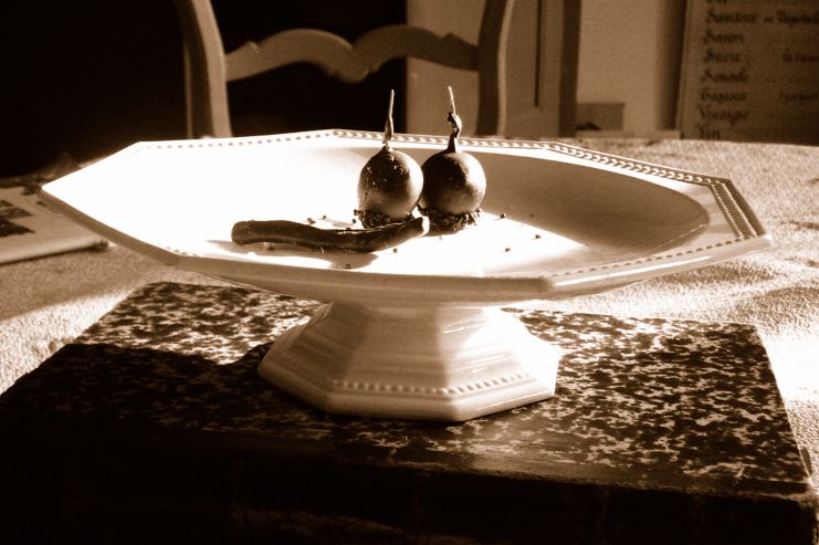 Smiling I took the chocolate covered cherry, nodded a, “Merci!” and popped it in my mouth, though secretly inside wishing I could have the plate too!