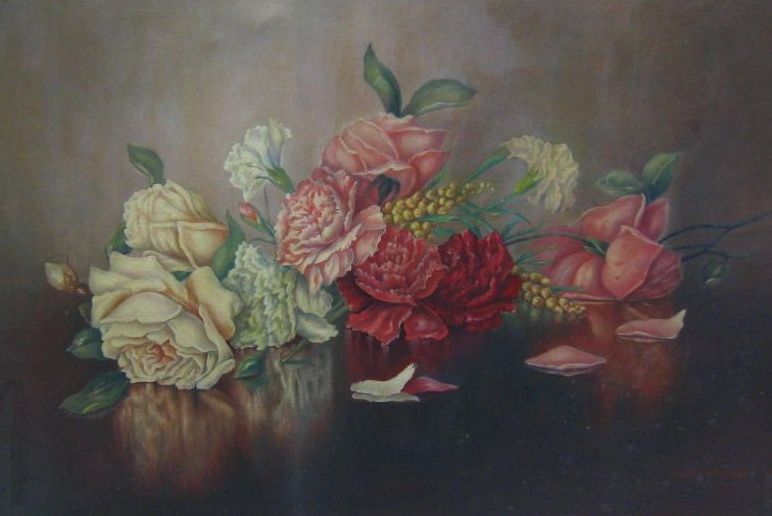 Oh gosh Corey … I collect the old old rose paintings … the beaten up and not-so-perfect ones have the most charm to me. Love this painting … was it done by your friend or is it older than that? Gorgeous.