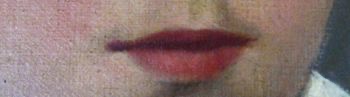 *19th century oil on canvas painting of an young man. His ruby lips.