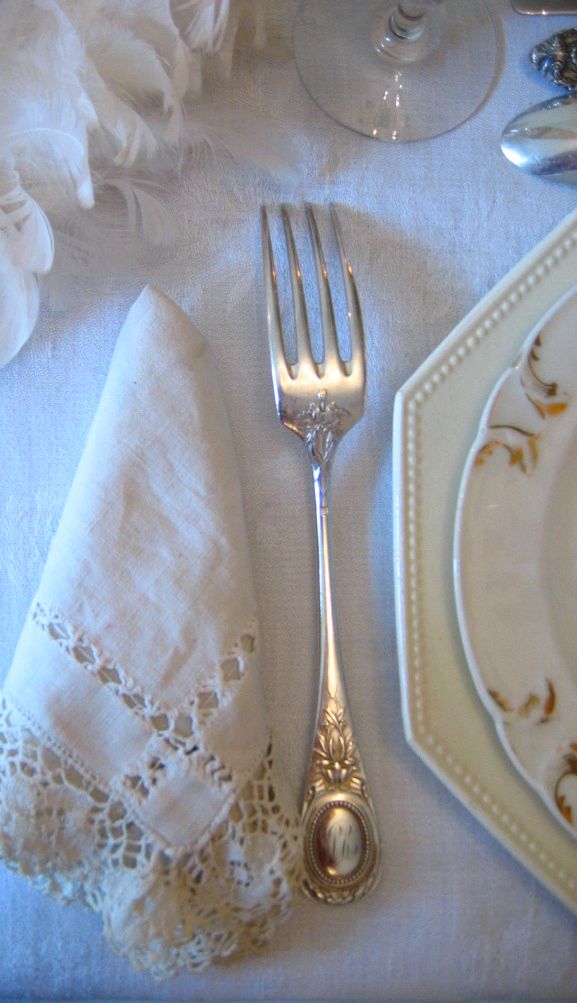 lovely photo of the silver fork and hanky…