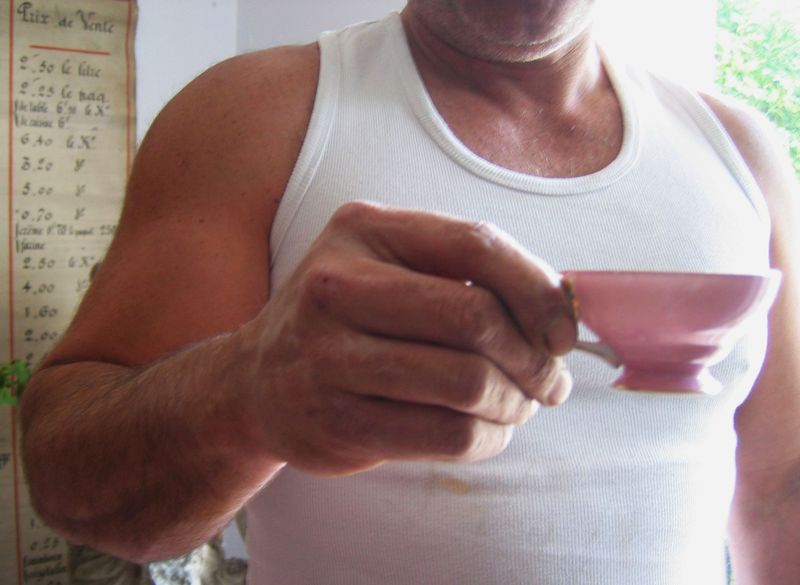 Each morning we share a cup of coffee. This morning it dawned on me, one of the extraordinary elements of a French man is, that they don’t mind drinking coffee in dainty pretty cups; cups that would make Cinderella blush!