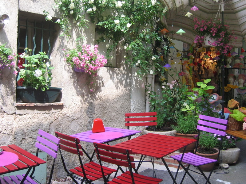 Those pink and magenta cafe tables just knock my socks off. Oh to take a seat.