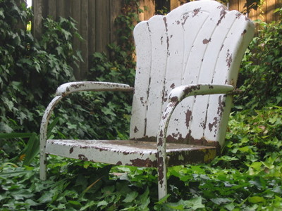 The chair grows, amongst the ivy, rusty and worn, sturdy and inviting. What are the words that have created you…