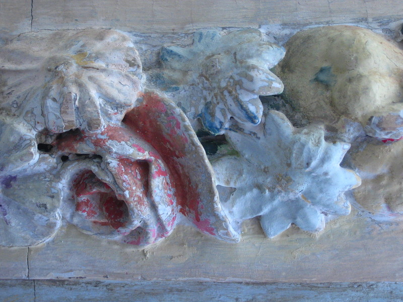A small pine wood panel, carved and painted in the 18th century. Gives beyond its time as a seed.