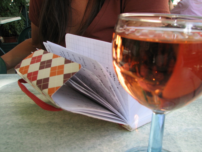 while scribbling random thoughts in a mini paperback notebook.