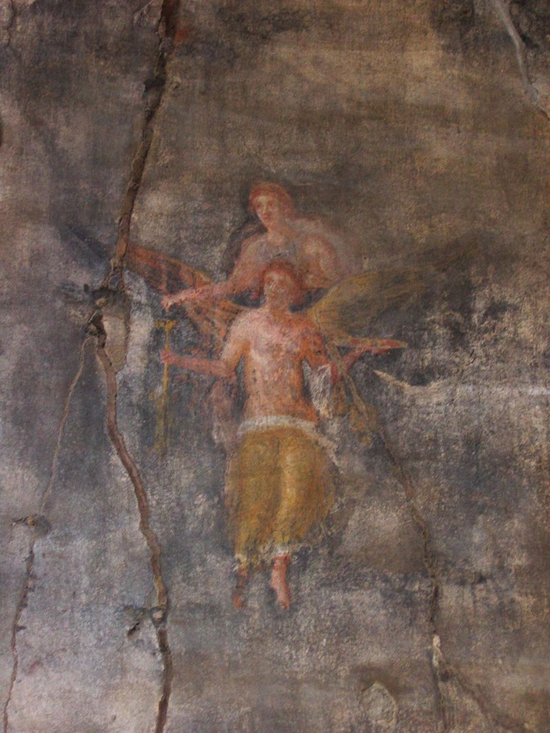 photo: a surviving mural on a wall in Pompeii.