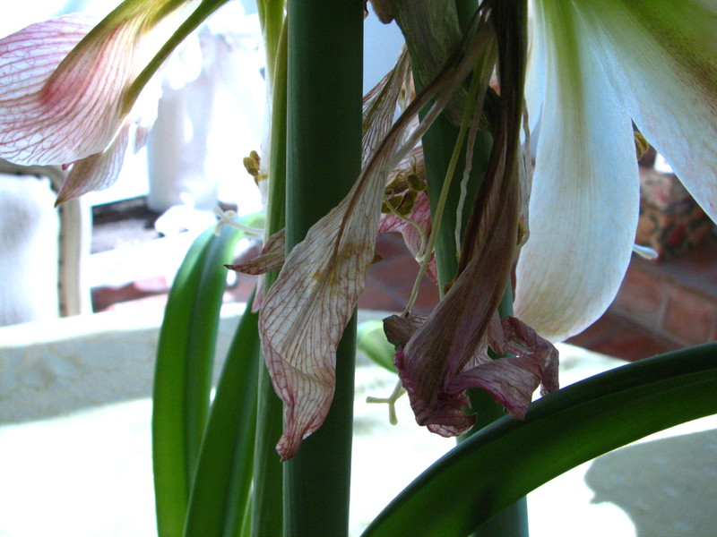 Photo: The Amaryllis on my dining room table says goodbye. PERFUME one of my favorite books!