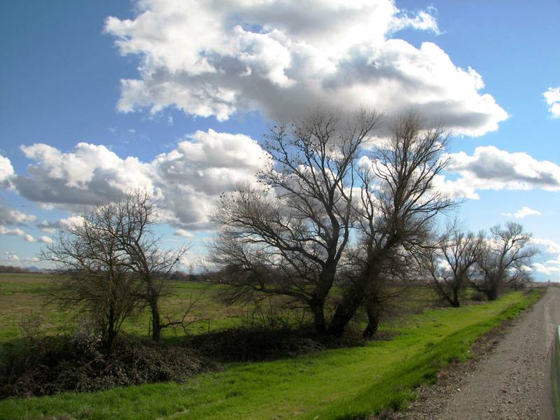 Photos: The colors of rice green, grey paved back roads, toiled dirt, dry rice stuble, tint of pink almond blossoms and the ever changing sky. Places I call home.