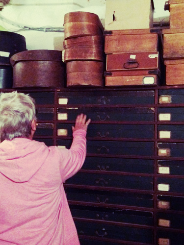 Charland found an 1800s sample box of silk threads.