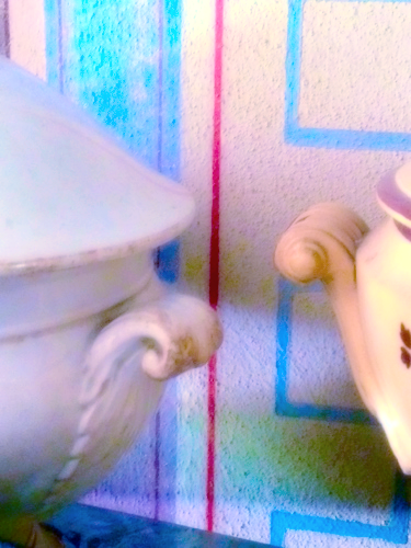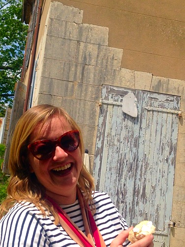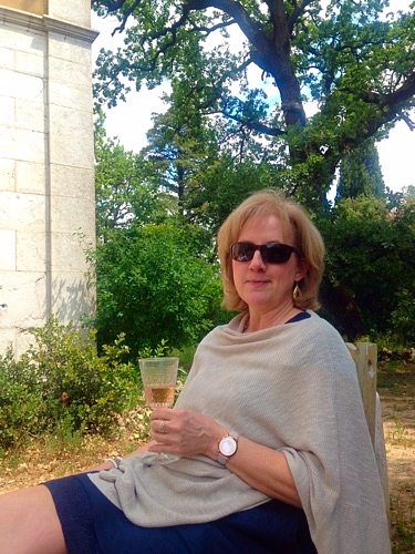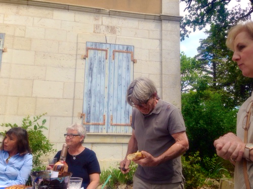 We started out early and headed towards the chateau to explore, do the brocante, visit our antique dealer friend Nelly and then we had a picnic on the chateau grounds. Afterwards we went to our other friend Mo who is a potter extraordinaire. Mo works with black clay with a white glaze. Plus her garden was in full bloom, roses galore.