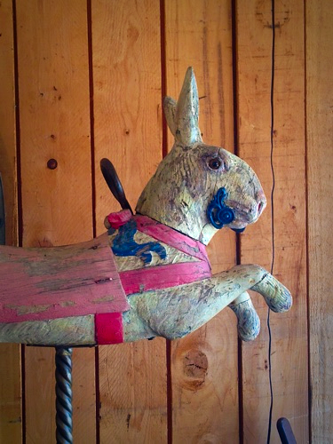 A darling carousel rabbit. Wooden and hand-painted.