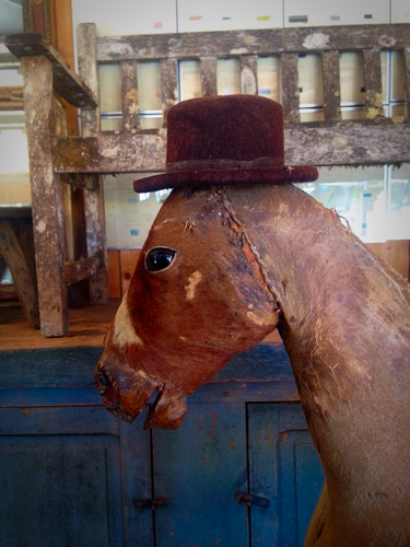 A toy horse with a hat.