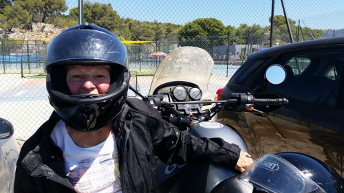 Today French Husband asked if she wanted to go to Cassis by motorcycle, she is not one to say no to adventure. So she put on my helmet, jacket and gloves, hopped on the massive motorcycle and away they went. As they rode off I thought, "Talk about alive and kickin'!"