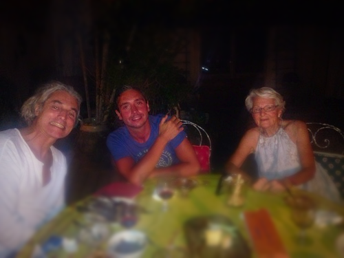 Tonight was a small dinner party… French Husband's nephew who is a chef in Paris (no pressure there!) and who today rode a bike to and from Cassis (about 65K) and took some sun. My Belle Mere and French Husband.