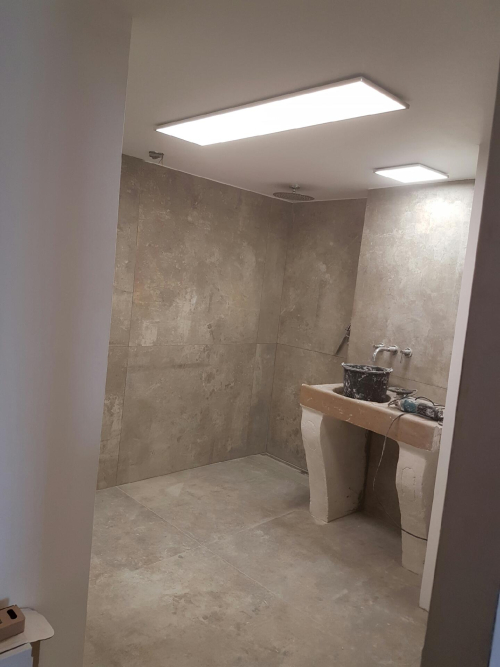 Wow!! Impressive!! Love it!! Lights, bathroom walls! It going to be fabulous!