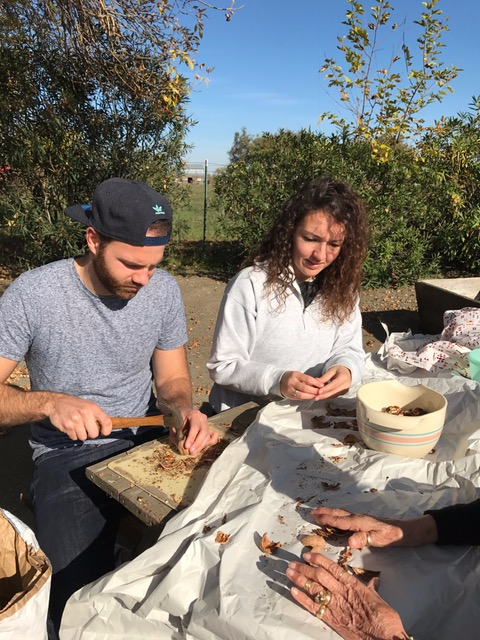 Mr. Espresso cracked the walnuts and we shelled them.