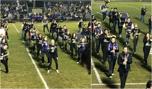 After seeing many videos of my niece Marie (a Senior in high school) and my Godchild/Nephew George (a Freshman in high school) I finally saw them last night rocking out on the high school field.