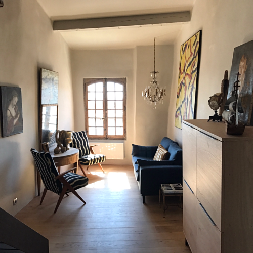 While creating our newest home in Cassis, I entertained the thought of doing something different, especially when we took out the dropped ceiling and created a loft. The volume of the space spoke a new language, modern was its name. The challenge was to create a modern look combined with my taste for antiques. Friends can attest to my doubting if I could pull it off: Arnelle, Denise, Gina… to name a few. Their cheering me with appreciated guidance gave me the vote of confidence I needed.