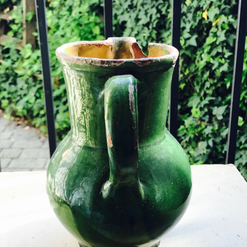 Good evening Corey, I am wondering if the green cruche ( to the far left ) in the photo with the three pieces with the artichoke is for sale. It did not appear in the photos you sent earlier today. Thank you, Cheri