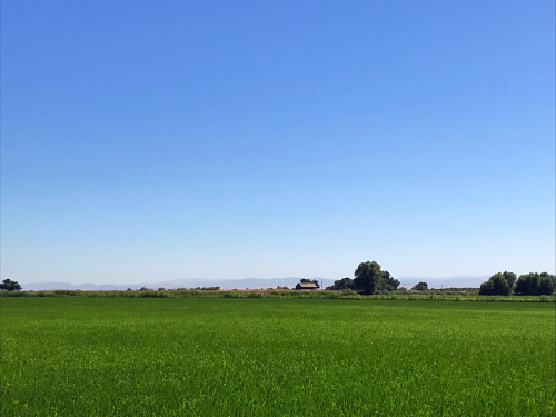 While driving around the fields we searched the canal banks for wild blackberries. My Mom said next week they will be ripe, so blackberry pies will be on the menu.