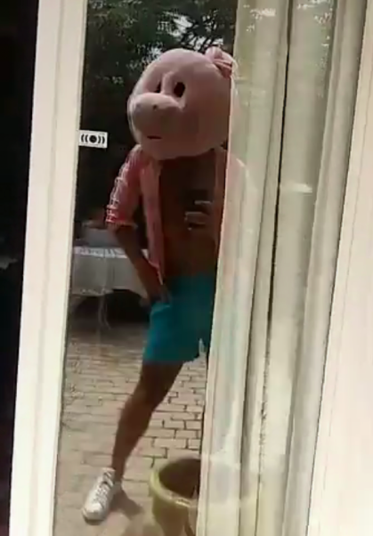Sacha retrieved his pig costume that he bought when he spent a gap year in California. He has been pranking us with it ever since.