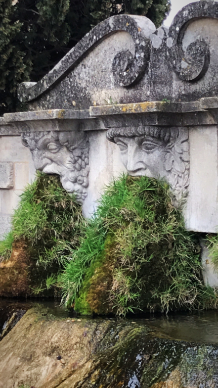 The 3rd photo is a hoot, with those cascades of grass (perhaps St. Augustine grass?) pouring out the sculptures’ mouths!