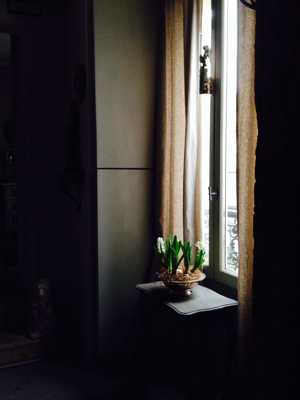 One of the corners of our apartment, a gathering of antiques that I found at the nearby brocante.