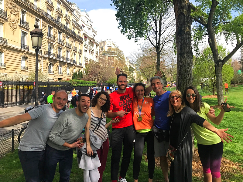 The Cheerleaders: Fabrice (Chelsea and Sacha’s childhood friend), David (Martin’s childhood friend), Clemence (Chelsea’s junior high school friend), Martin (Mr. Espresso future husband), The Marathoner, Yann, me, and Alice (Chelsea’s university friend who ran several kilometers with her at the end.)