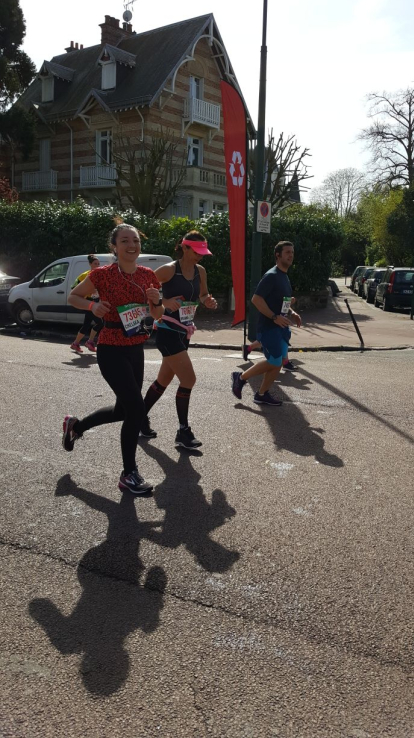 Chelsea had a Schneider APP on her cell phone that her support team was connected to. With it, we could track her progress: Where she was on the route/map, projected her speed and time. Chelsea also had a WHATSAPP group that where we could share photos and give updates as she passed by. Several friends plus Yann and I were stationed at different places on the route that she had set up. Sacha was connected by phone and was programmed to call her towards the end of the race, to keep her company plus she had Yann run the last ten Kilometers with her for moral support. A friend Alice, ran with her to cheer her on as well.