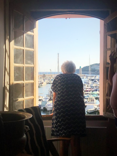 My mom made it up to the fisherman's house. Mounting our seriously steep stairway in stride.