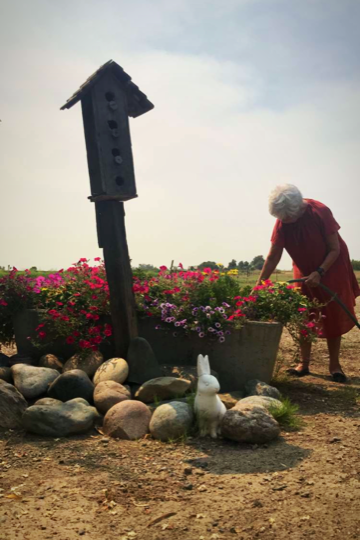My mom back home watering the trough turned flower bed which stands at the beginning of the driveway. Our routines after Chelsea's wedding come back to play allowing us to take comfort in the familiar, giving direction after happily intense emotion, and a way to pad the ache of saying goodbye. My niece Molly, one of the five nieces who came early June for two weeks in France, sent me this photo of my mom with a message that said, "Isn't she the cutest?"