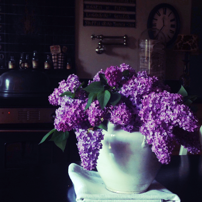 Darker lilacs grew further up the path so I gathered some of those too for the living room.