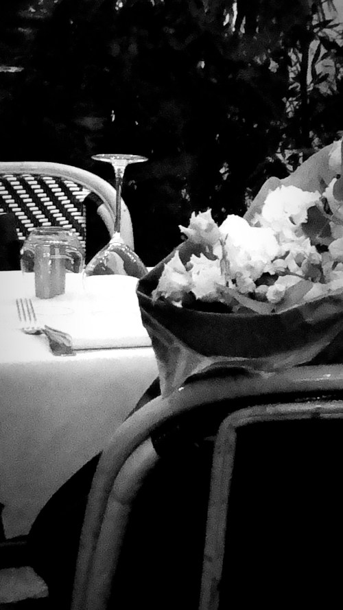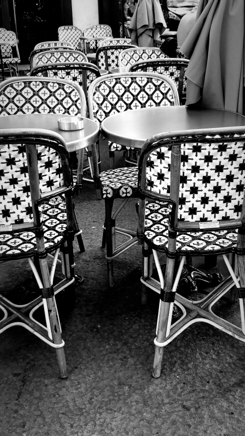 Outdoor cafe rattan chairs are so very French.