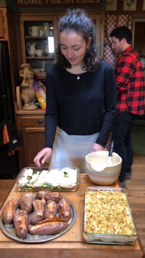Homemade pumpkin and apricot pies, plus cookies and mud pie.
