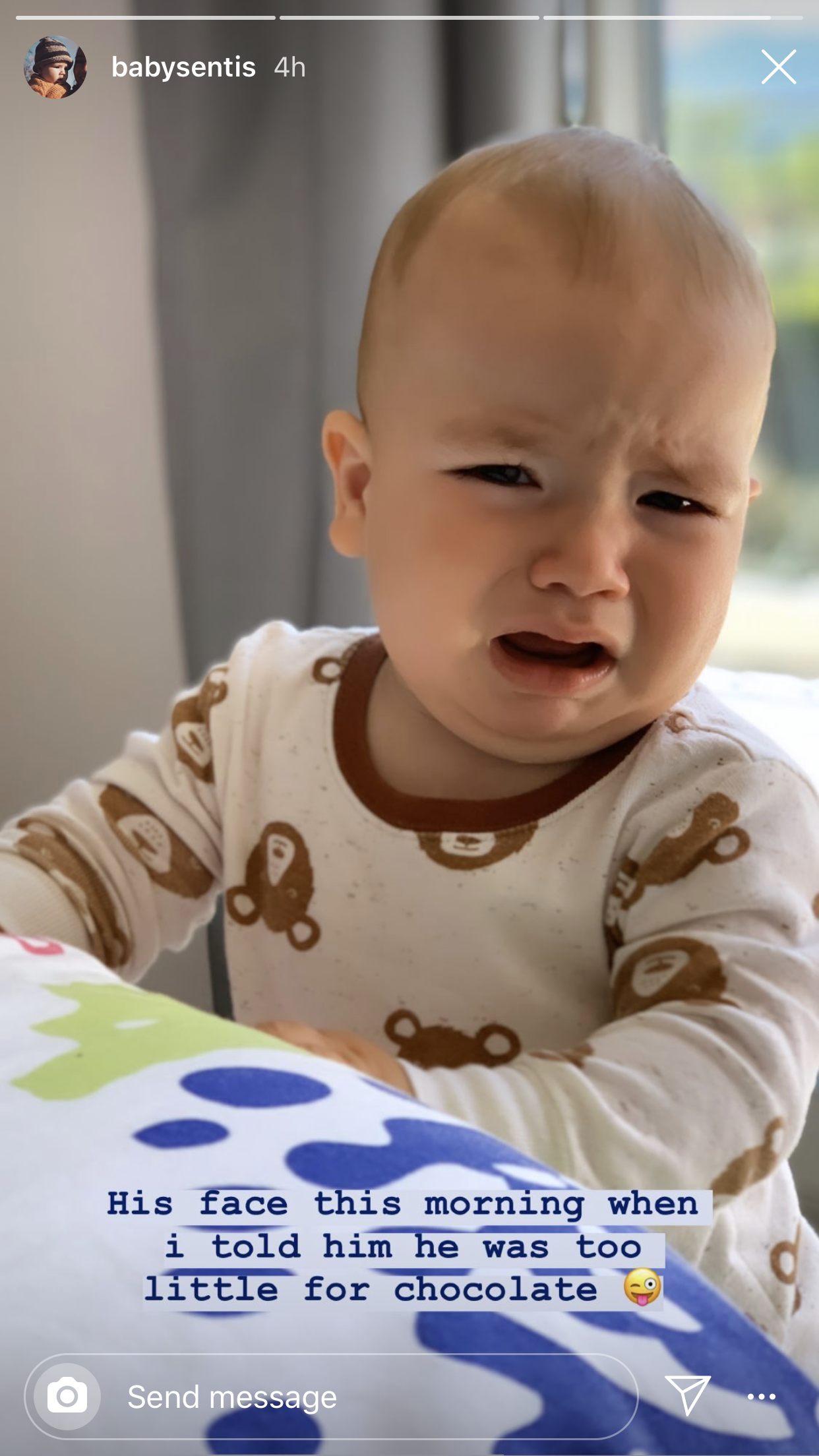 The day before France had the lockdown Chelsea and Martin were in Marseille for some business and were planning to return to Paris the next day. Needless to say, they had very few personal belongings with them. Imagine the ever-growing baby and the variety of clothes they use. With the lockdown in place, the French can only go to the nearest grocery store. Martin's mother is the designated shopper so when she goes to the grocery store whatever they might have for a baby in need is bought. Too big baby shoes, wildly colorful bibs, mixed match colors or designs… as Chelsea laughingly says, "Not often the clothes I would have had in mind… and sadly the clothes back in our apartment he will never wear as he has grown. His Easter outfit … and our clothes… remain hanging in Paris."