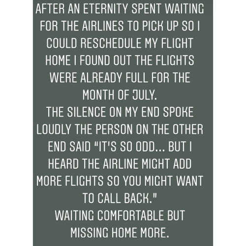 Sending you hope for a flight home. Holding you in my thoughts.