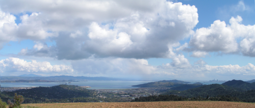 Our house is high on a hill in Marin and we're the last house before Open Space. If you walk up from our house to the top of Bald Hill, this is the view. That's San Francisco in the distance on the right. This photo was taken in March of this year.