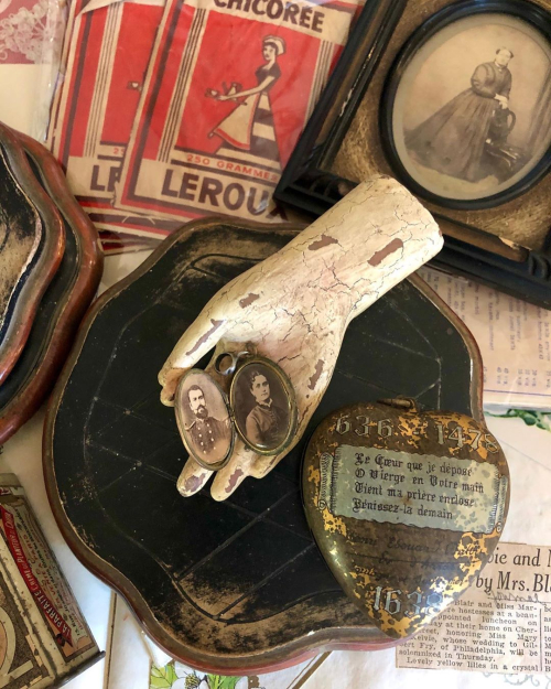 One of my first finds in Paris’s brocante 10 years ago, a metallic embroidered memoriam celebrating a wedding.