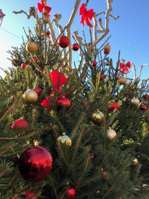 with Christmas trees adorned with