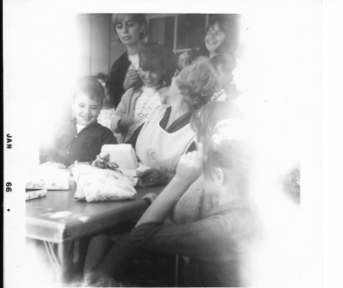 My brother Marty is standing by her side then and now)