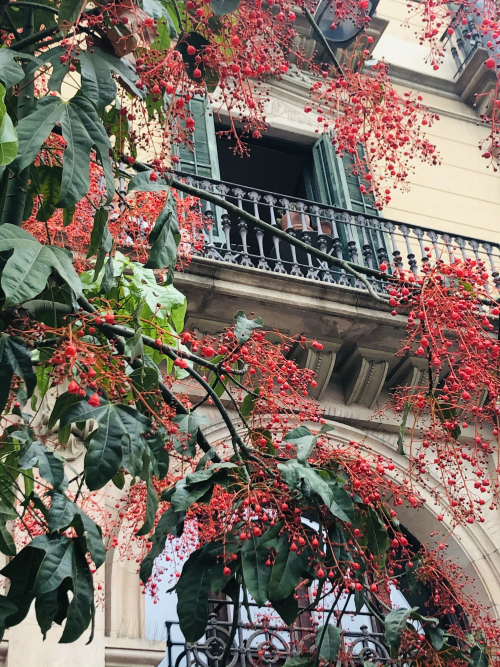 Red Asoka-Trees were blooming in Barcelona, which I had never seen before, the ground was covered with blooms.
