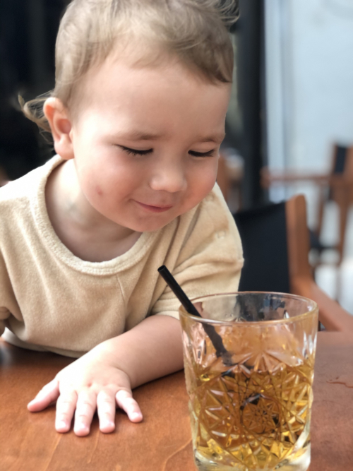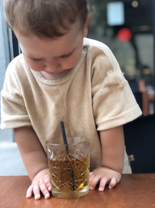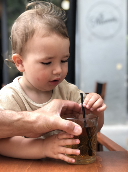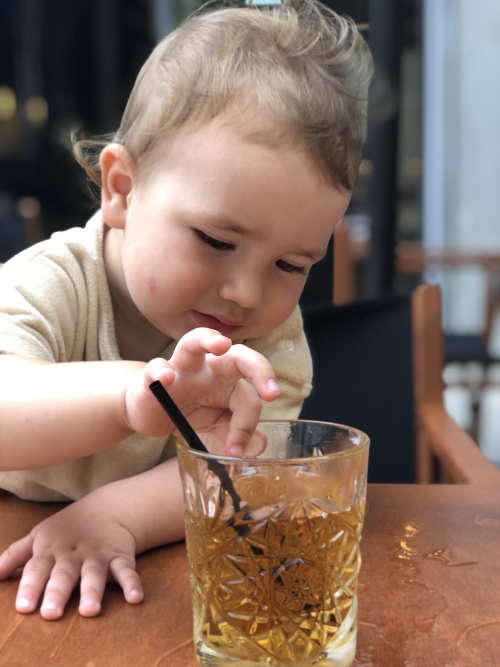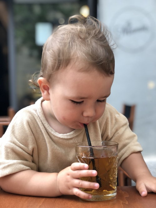 Beautiful adorable bambino, drinking with the straw! So cool! 😎