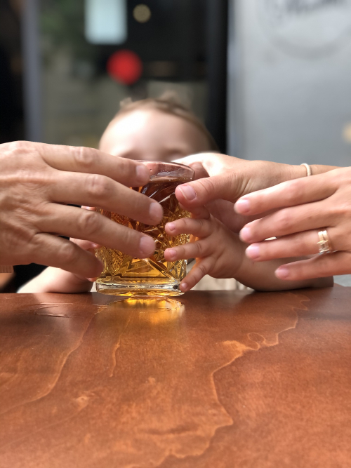 I remember when our littles were this little. Gramma and Grampa would always ask for “an extra glass please!” When the glasses arrived we would pour off a bit of juice into the empty glass filling it only an inch or so making it much more manageable (and successful) for first timers. Seeing the “refills” readily available also made for more relaxed drinking.
