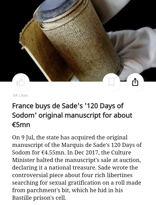 Have you ever read it? I found a copy in a house I bought back in 1974. I was horrified by what I was reading, but I did keep reading (I was young.) Sade had a seriously twisted mind. When I was done reading it, I tore it up and threw it away. I never wanted to read it again. The book includes vivid descriptions of torturing and raping children.