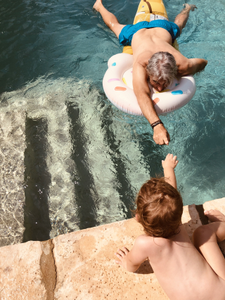 Working on a watercolor, enjoying our pool, missing our grandkids greatly.