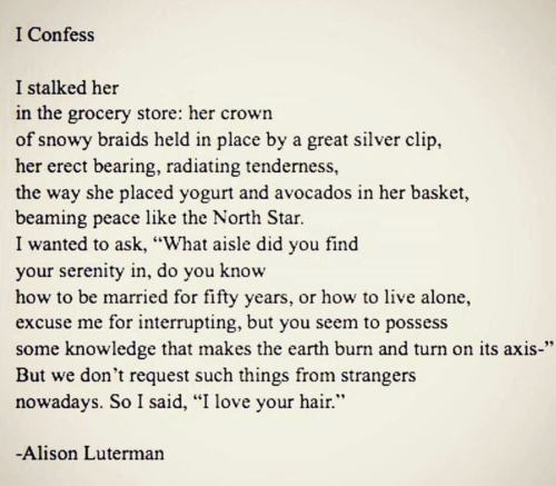 Not a week goes by that someone doesn’t comment on my hair. I am going to pretend this poem is really the words being spoken. ❤️ I know I think all this when I think of you.