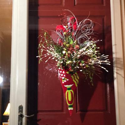 A few years ago I lost my 30 year collection of Christopher Radko, Patricia Breen and French ornaments. I decided that this year, rather than a tree, I would gather some of my favorite Christmas treasures together and make a holiday corner. It includes a weathered Victorian wicker chair, one of a pair, I bought at a yard sale and I have had for over 40 years and are over 100 years old. A papier-mâché Santa face from Will Jamieson’s Folk Craft Gallery (may he RIP). He helped change the face of art in Portland. A woven star by Billie Ruth Sudduth, who we lost two months ago, was named a Living Treasure by the State of NC. She said she thought her legacy was “getting baskets off the floor and onto pedestals as art objects.” She has works in all the major craft museums in the United States. My elf is from Martha Harris Flowers and Gifts. She was a remarkable woman and florist who, like you Corey, had an artist’s eye for beauty. If you had met her you would have become friends. She died after a nine year battle with cancer. I love these old, weathered parts of my history. I so appreciate the loving hands that wove the wicker, molded the paper and hand painted the face of Santa, stitched and hand painted the elf.