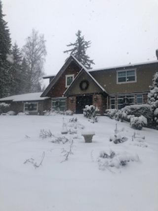 I live in Edmonds, a few miles north of Seattle WA. We’re experiencing an unusual cold snap here. I’ve included pics of our outdoor Christmas decor, as well as our tree, mantle, and some clustered old Santas on the hearth.(I’m not much of a photographer, so apologies!) I’ve scaled back decorating in recent years, just unpacking the favorites. My 3 children
