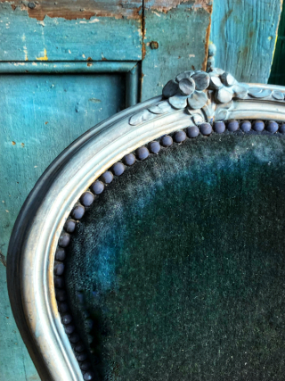 a blue velvet chair